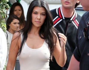 It doesnt matter if you prefer Kim, Khloe or Kourtney... Today we will bow to Kourtney for showing up in public without wearing a bra. She has such a hot hard pokies!...